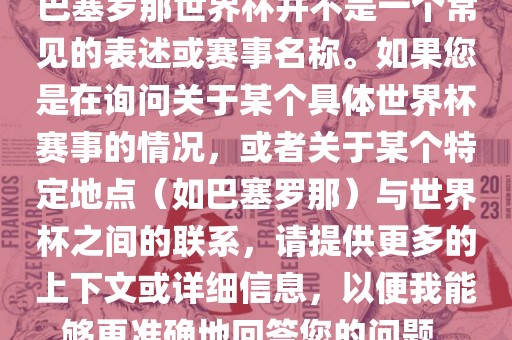 巴塞罗那世界杯并不是一个常见的表述或赛事名称。如果您是在询问关于某个具体世界杯赛事的情况,或者关于某个特定地点(如巴塞罗那)与世界杯之间的联系,请提供更多的上下文或详细信息,以便我能够更准确地回答您的问题。