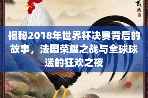 摘要:,,本文揭示了2018年世界杯决赛背后的故事,展现了法国队的荣耀之战和全球球迷的狂欢之夜。在这场激动人心的比赛中,法国队通过精彩的团队合作和坚韧的斗志,最终赢得了冠军。这场决赛不仅成为了足球史上的经典之战,也激发了全球球迷的热情和激情,成为了一个难忘的夜晚。
