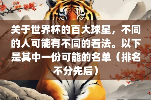 如需了解更多世界杯百大球星的名单,建议查阅足球领域相关资讯或权威机构发布的榜单。